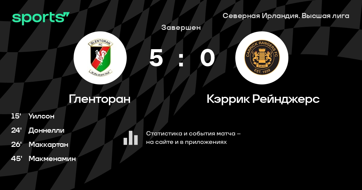Гленторан – Кэррик Рейнджерс: Гленторан не пропускает в 0 из 9 последних матчей против этого соперника
