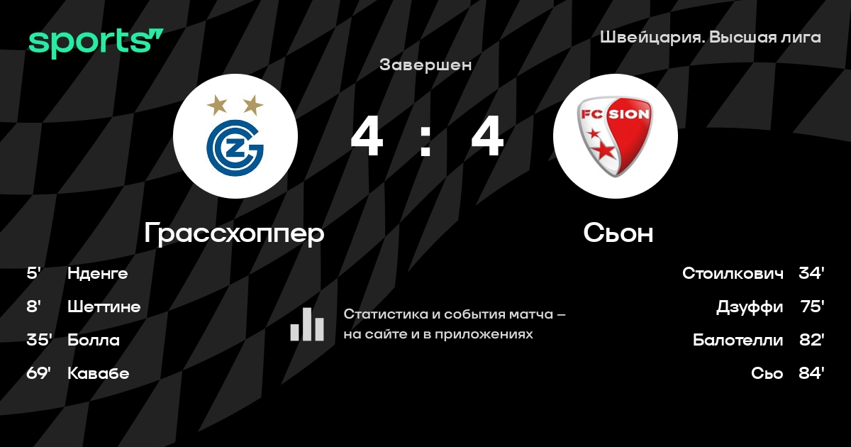 Грассхоппер – Сьон: Сьон забивает в 6 последних матчах против этого соперника