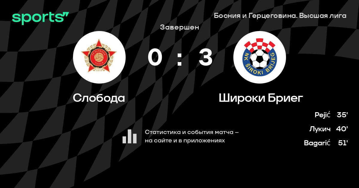 Слобода – Широки Бриег: Широки Бриег не пропускает в 4 последних матчах против этого соперника