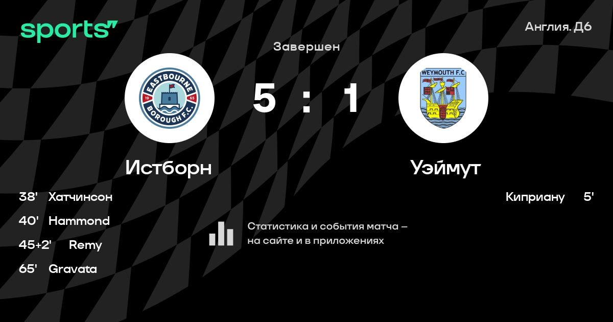 Истборн – Уэймут: Уэймут не проигрывает в 6 из 8 последних матчей против этого соперника