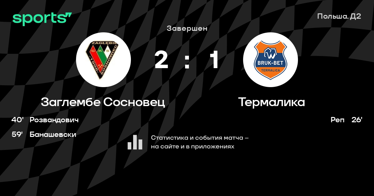 В последних 5 играх Заглембе Сосновец пропускает в среднем 1.00 гола за игру