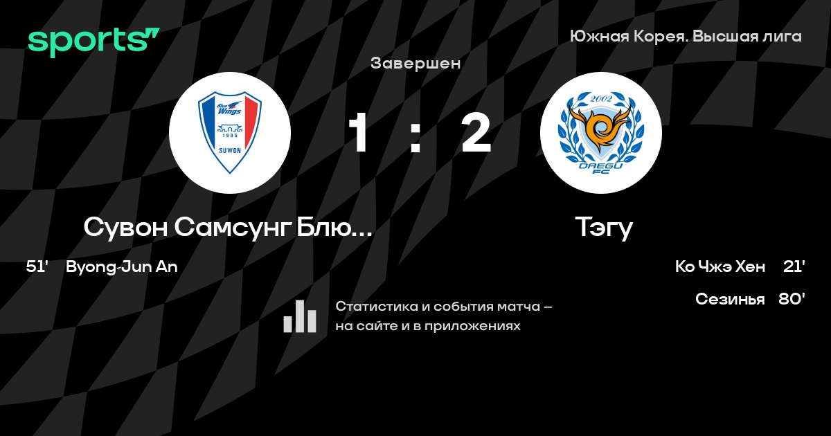 Сувон Самсунг Блювингс – Тэгу: Тэгу не проигрывает в 5 из 7 последних матчей против этого соперника в гостях