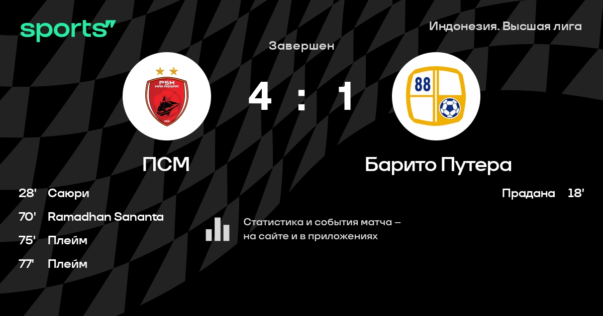 ПСМ – Барито Путера: Барито Путера забивает в 10 последних матчах против этого соперника
