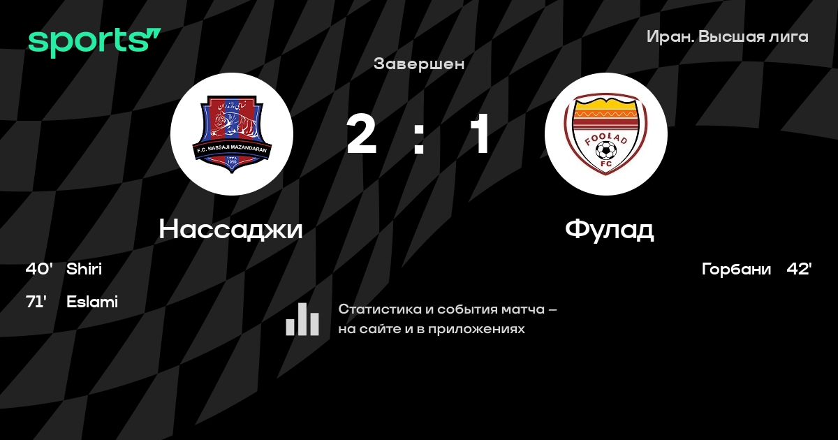 Нассаджи – Фулад: Фулад забивает в 5 из 7 последних матчей против этого соперника