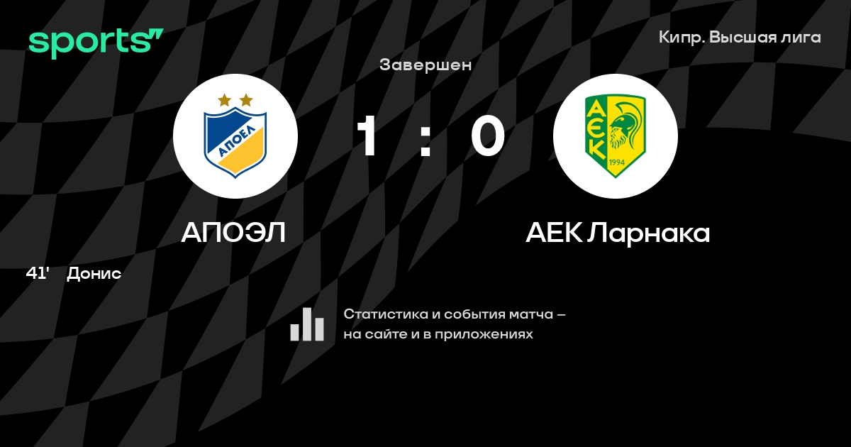 АПОЭЛ – АЕК Ларнака: АЕК Ларнака не проигрывает в 6 из 8 последних матчей против этого соперника в гостях в турнире «Лига 1»