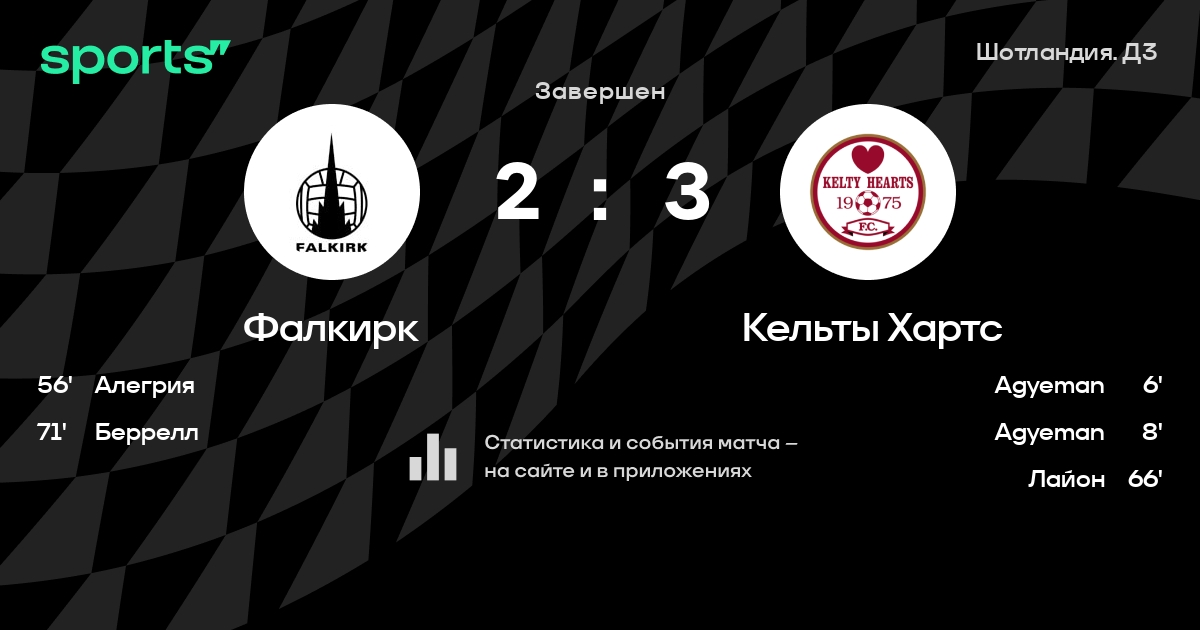 Hogarth - Маккэнн, Хендерсон, Доналдсон, Маккей - Моррисон, Оливер, Несбитт, Макгинн, Макгаффи - АлегрияЗапасные: Мартин, Макки, Хетерингтон, Lawal, Росс, Yeats, Беррелл, Кеннеди, Malcolm