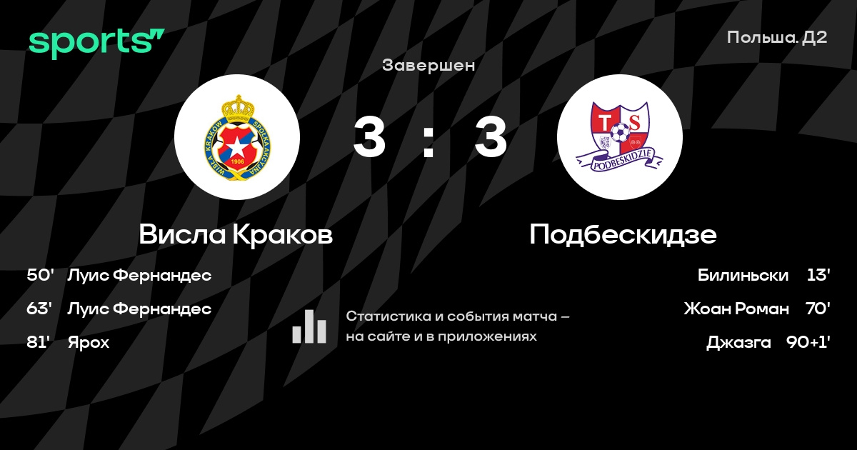 Висла Краков – Подбескидзе: Подбескидзе забивает в 3 последних матчах против этого соперника