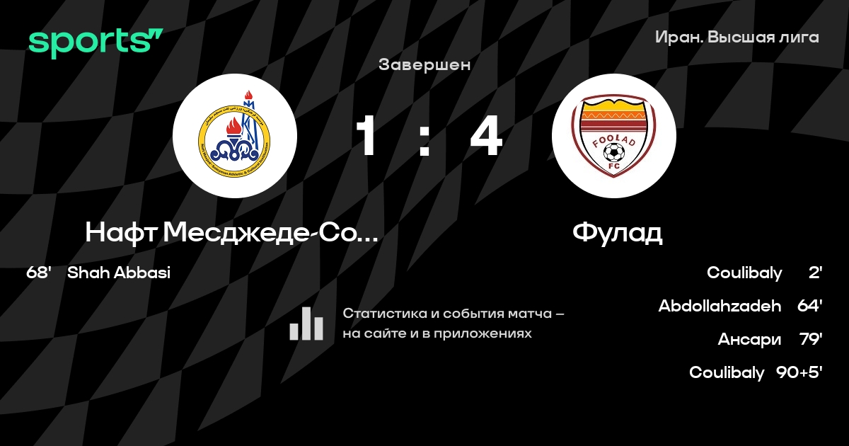 Нафт Месджеде-Солейман – Фулад: Фулад не пропускает в 3 последних матчах против этого соперника