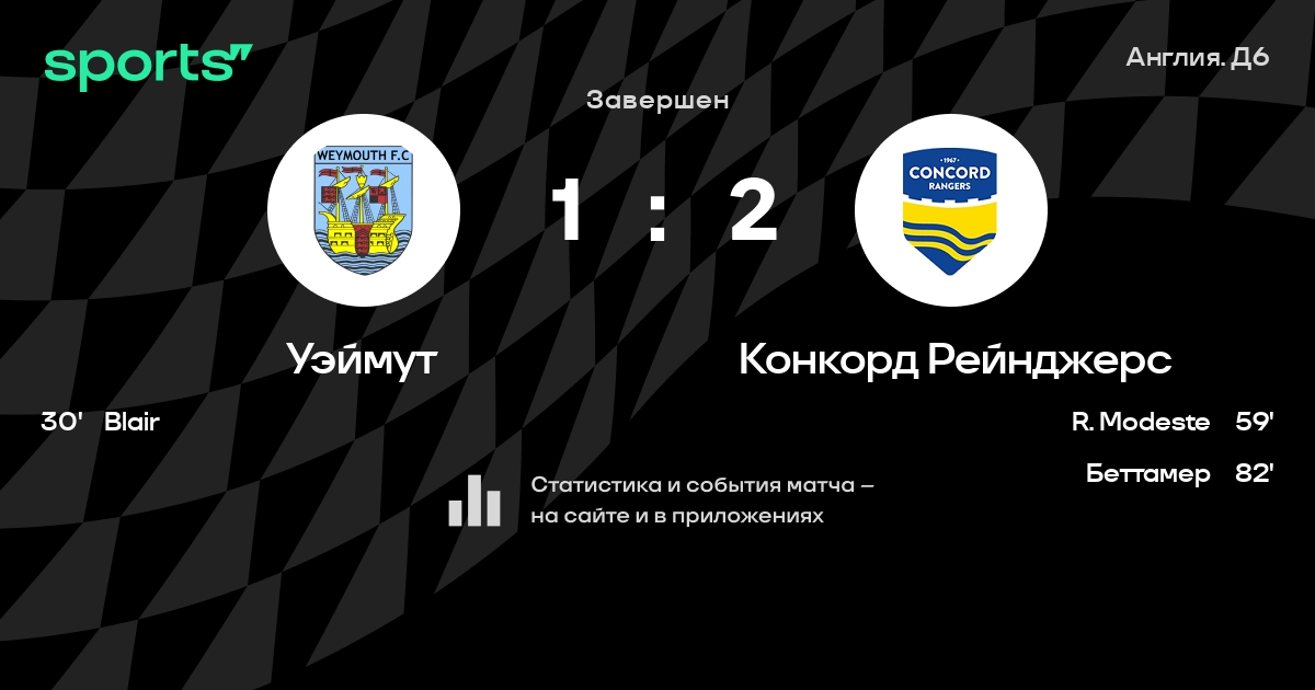 Уэймут - Конкорд Рейнджерс: составы на матч