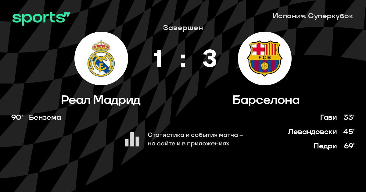 Реал Мадрид – Барселона: Реал Мадрид побеждает в 3 последних очных матчах в турнире «Суперкубок»