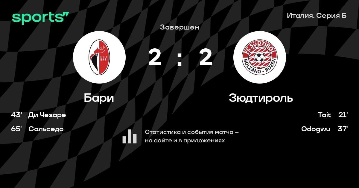 В последних 5 играх Бари пропускает в среднем 1.00 гола за игру