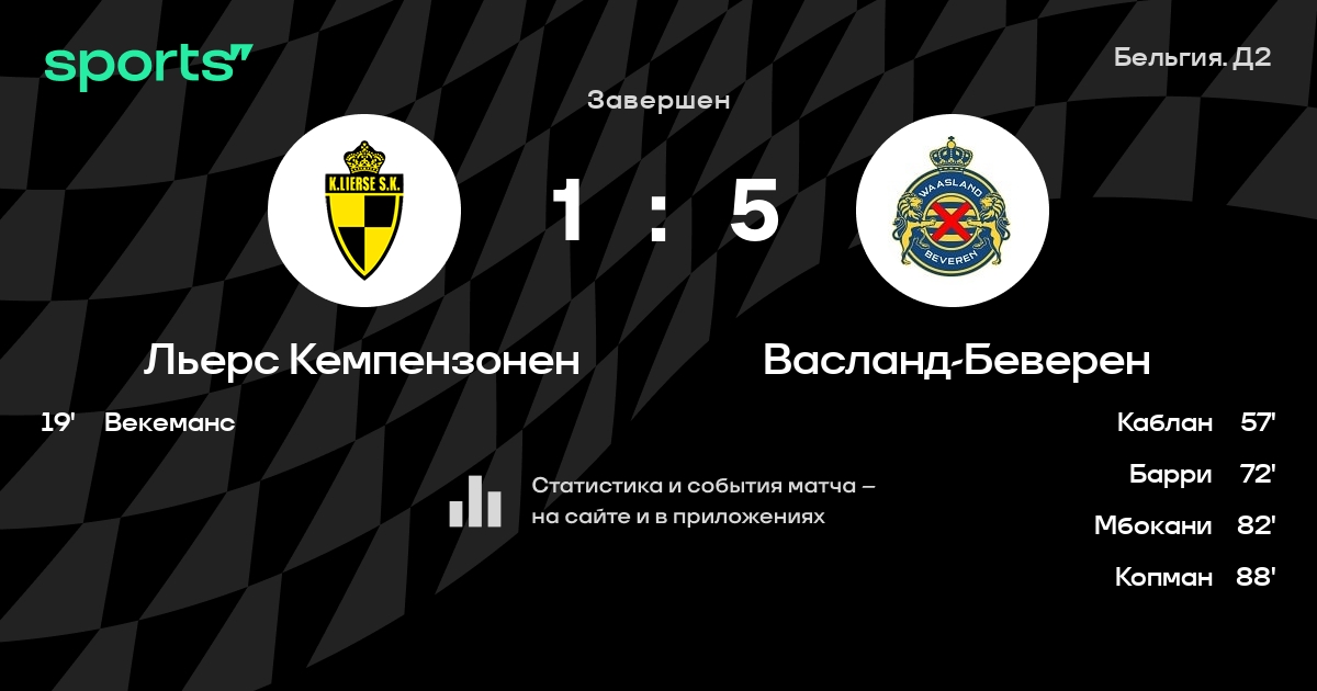 Деланге - Пюпе, Рамакерс, Гиллекенс - Laes, ван Акер, Бребельс, Libert - Векеманс, Табеку, WalbrecqЗапасные: де Смет, , Пулманс, Vanderhallen, De Schryver, Схоутерден, Роша