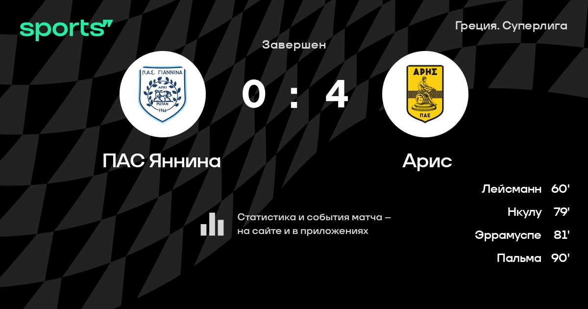 ПАС Яннина – Арис: ПАС Яннина не проигрывает в 5 из 7 последних матчей против этого соперника