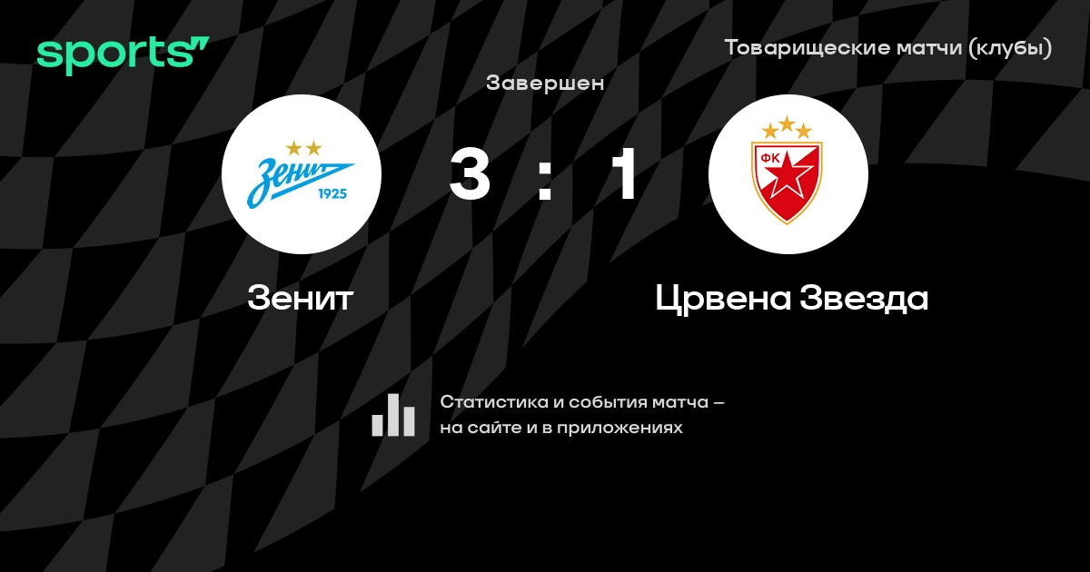 Зенит – Црвена Звезда: Зенит побеждает в 5 последних очных матчах