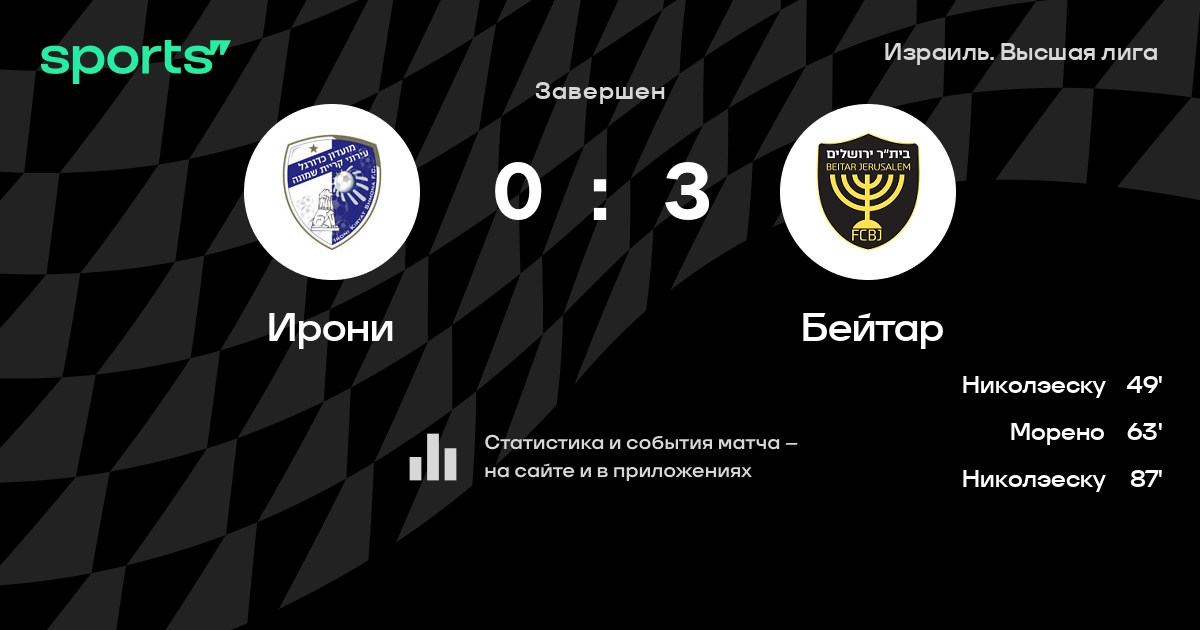 Ирони – Бейтар: Бейтар не проигрывает в 10 последних матчах против этого соперника
