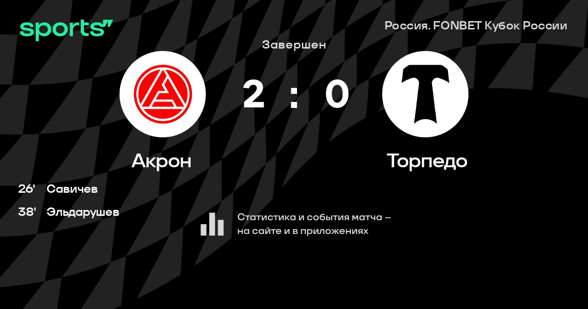«Акрон» победил «Торпедо», играя в меньшинстве с 58-й минуты – 2:0