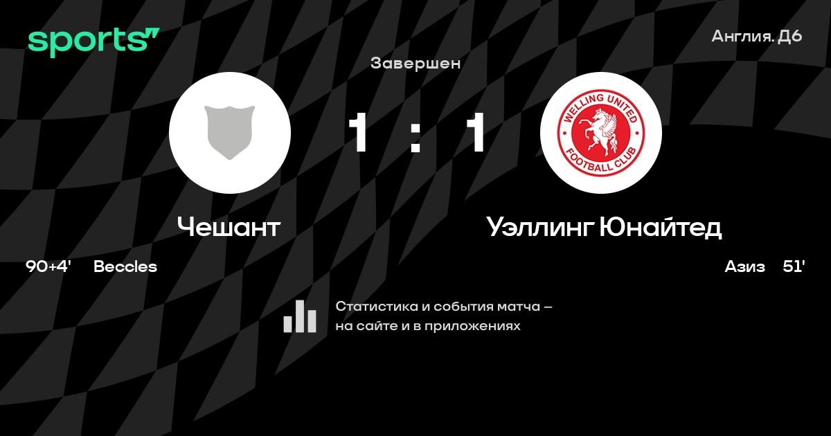 Чешант – Уэллинг Юнайтед: коэффициенты