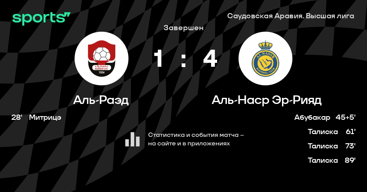 Аль-Раэд – Аль-Наср Эр-Рияд: Аль-Наср Эр-Рияд забивает в 14 последних матчах против этого соперника