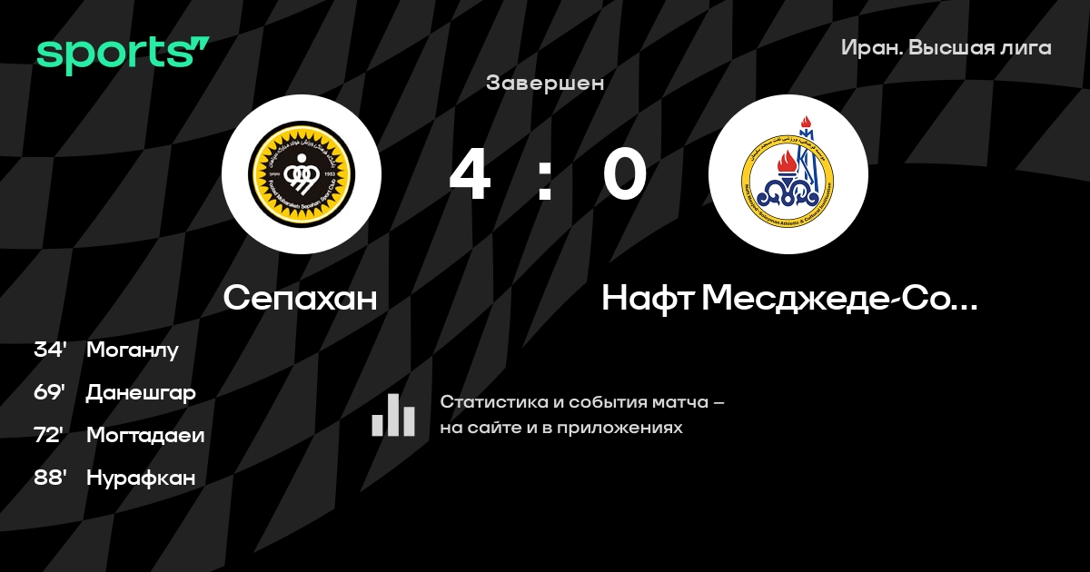 Сепахан – Нафт Месджеде-Солейман: Сепахан не проигрывает в 9 из 10 последних матчей против этого соперника