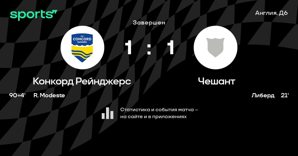 Конкорд Рейнджерс – Чешант: Конкорд Рейнджерс забивает в 4 последних матчах против этого соперника