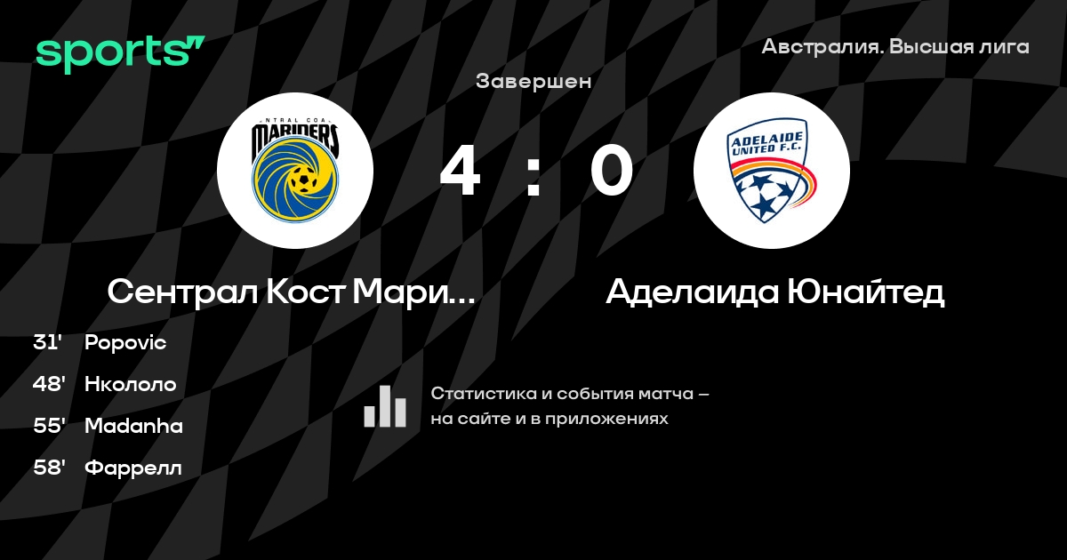 Трансляция Сентрал Кост Маринерс - Аделаида Юнайтед