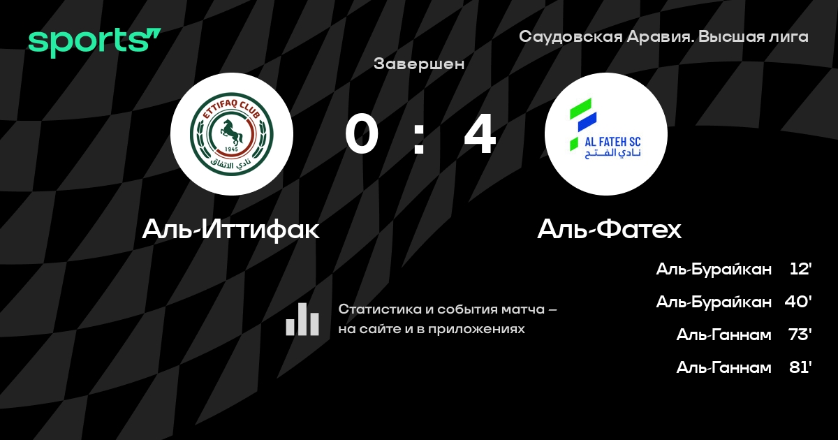 Аль-Иттифак – Аль-Фатех: Аль-Фатех не пропускает в 3 последних матчах против этого соперника