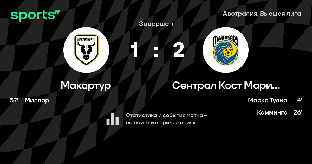 Макартур – Сентрал Кост Мэринерс: Макартур забивает в 6 последних матчах против этого соперника