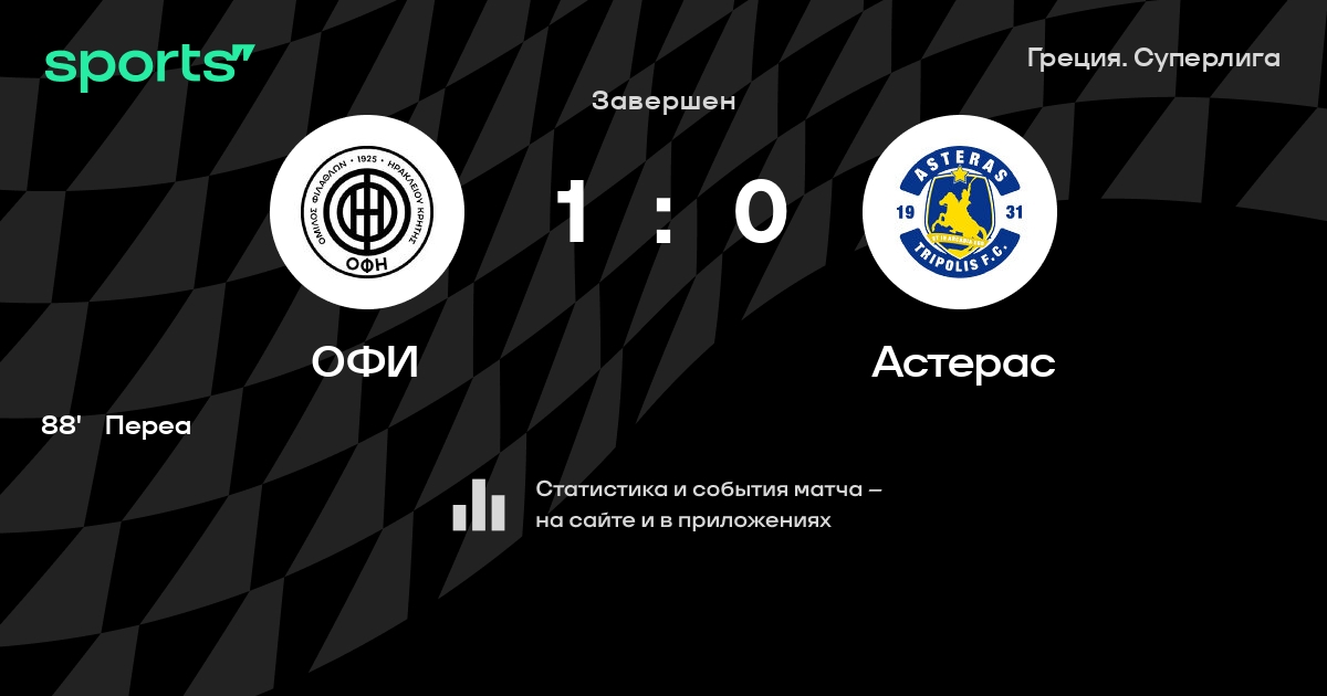 ОФИ – Астерас: Астерас не проигрывает в 6 из 8 последних матчей против этого соперника в турнире «Суперлига»