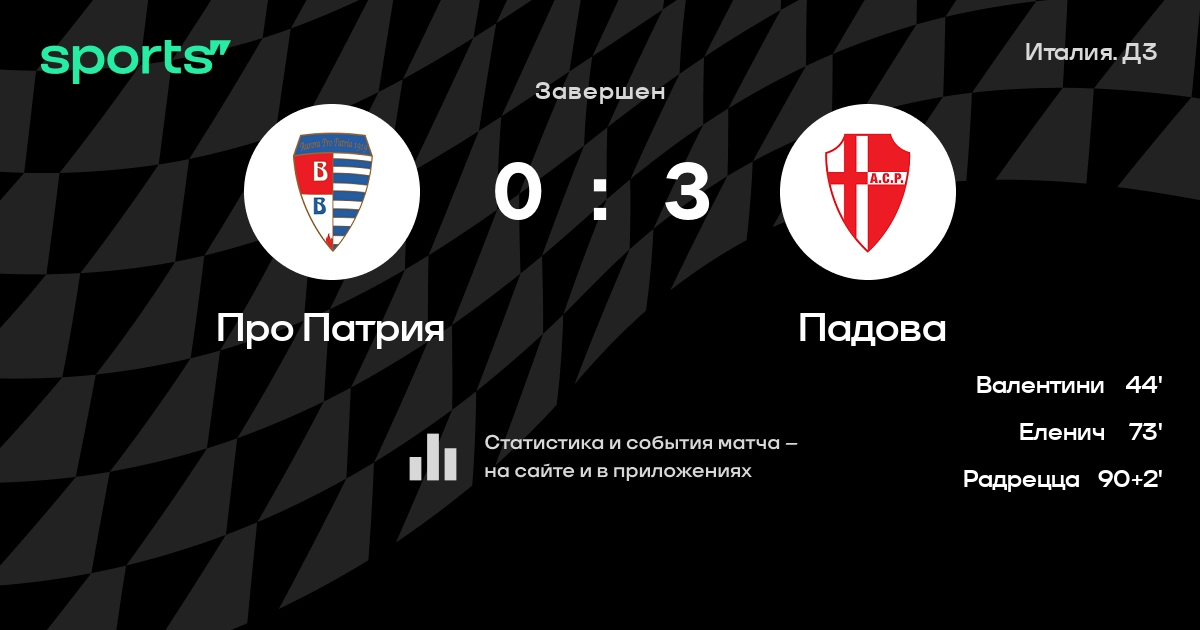Про Патрия – Падова: Падова забивает в 4 последних матчах против этого соперника