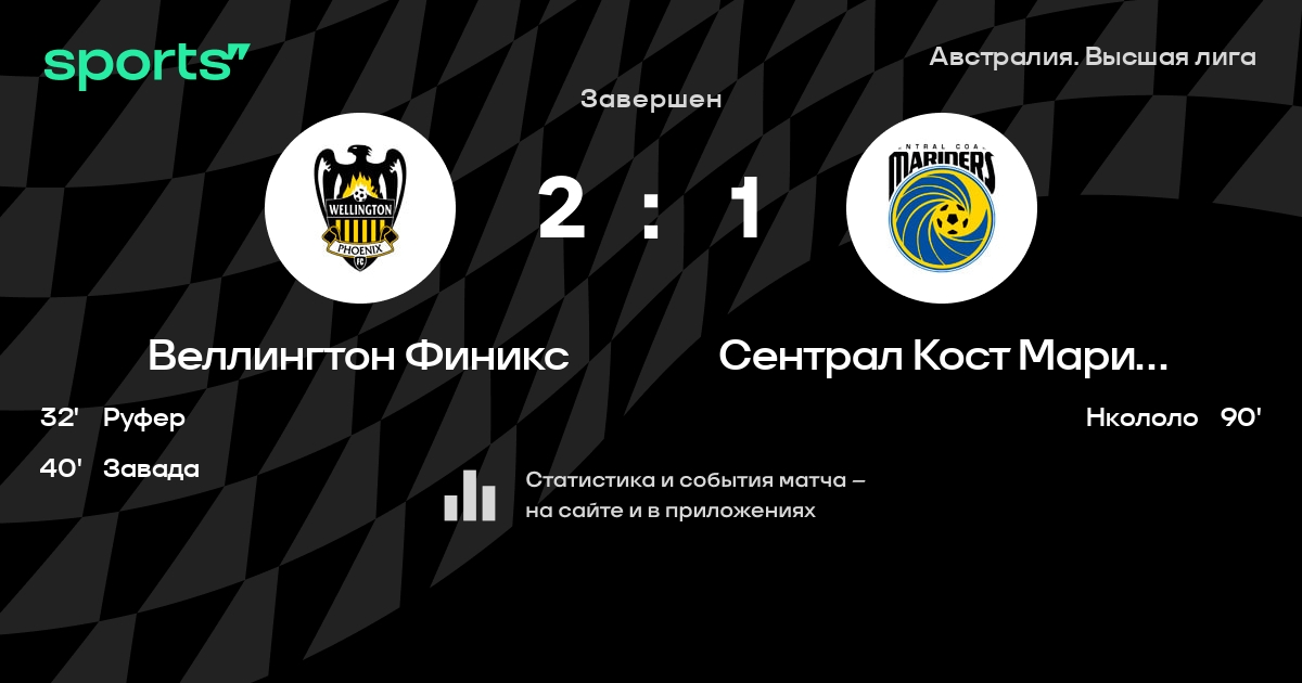 Веллингтон Финикс – Сентрал Кост Мэринерс: Сентрал Кост Мэринерс забивает в 10 последних матчах против этого соперника