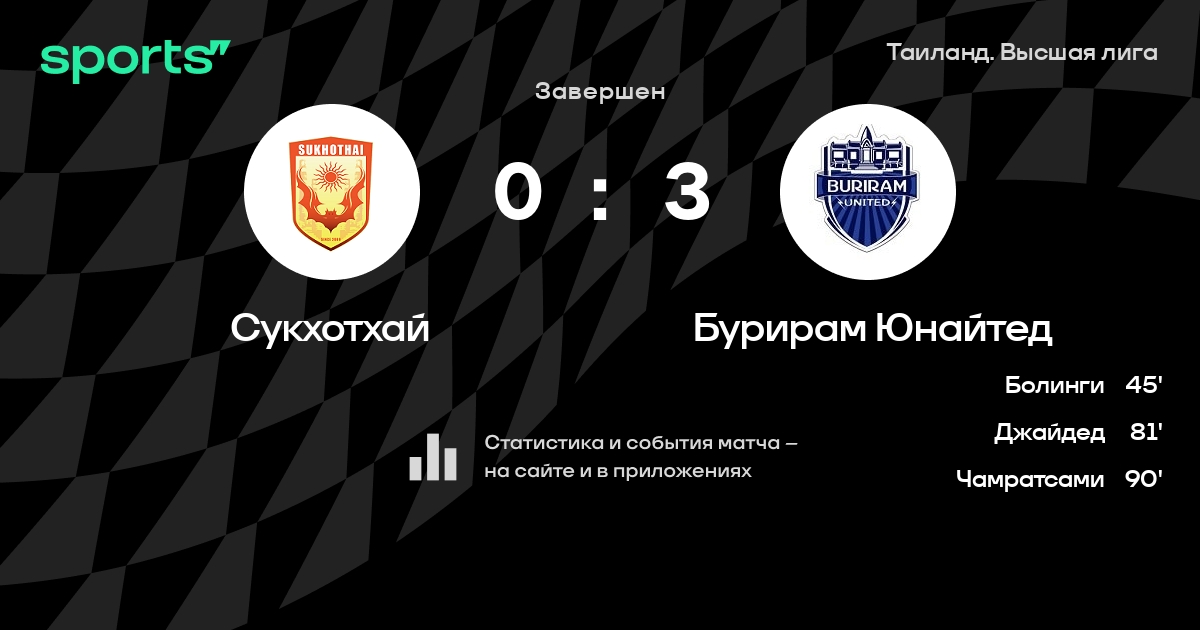 Сукхотхай – Бурирам Юнайтед: Бурирам Юнайтед побеждает в 3 последних очных матчах