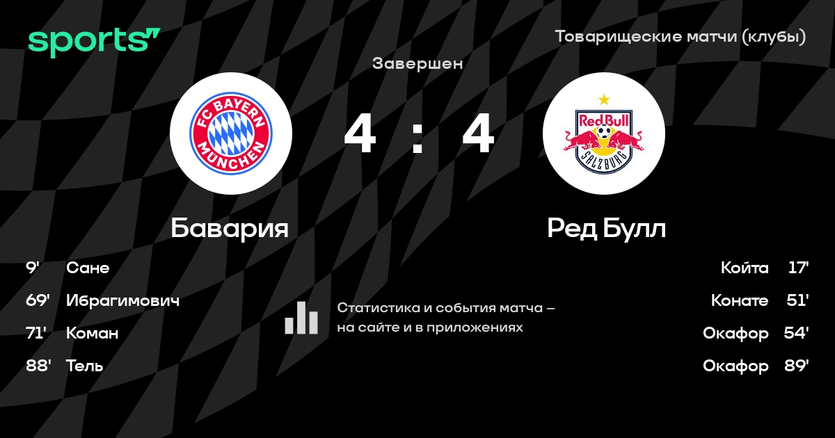 Ульрайх - Дэвис, Упамекано, Павар, Станишич - Гнабри, Киммих, Гравенберх, Мусиала, Сане - МюллерЗапасные: Шенк, Блинд, Бухманн, Ибрагимович, Забитцер, Ваннер, Звонарек, Коман, Кабадайы, Тель