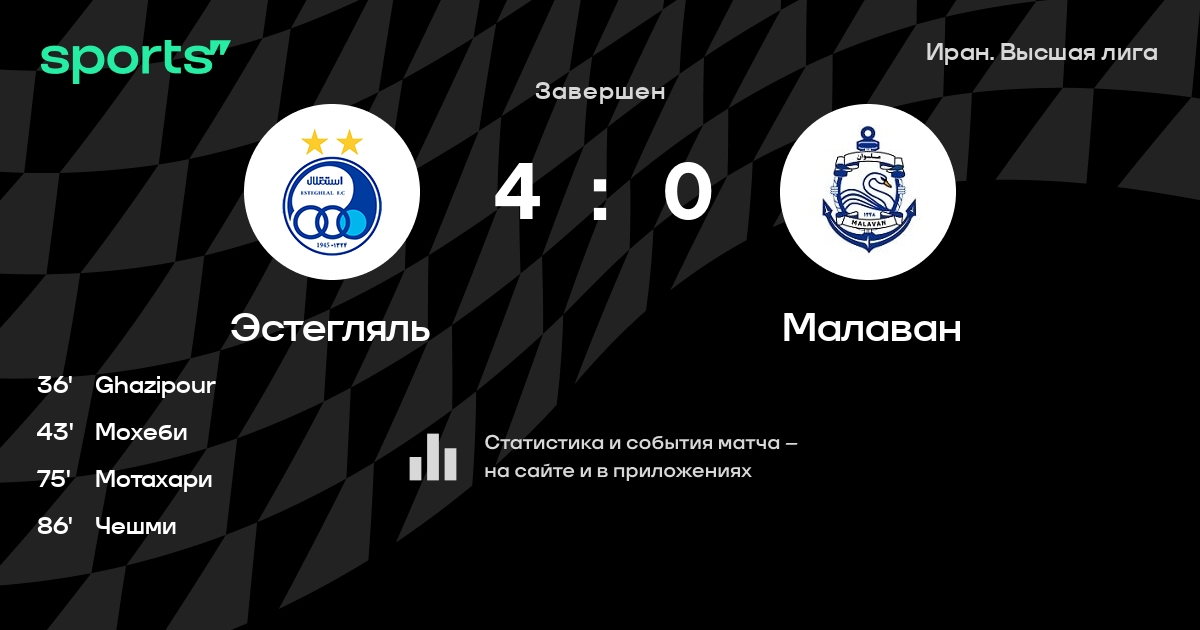 Эстегляль – Малаван: Малаван забивает в 5 из 7 последних матчей против этого соперника