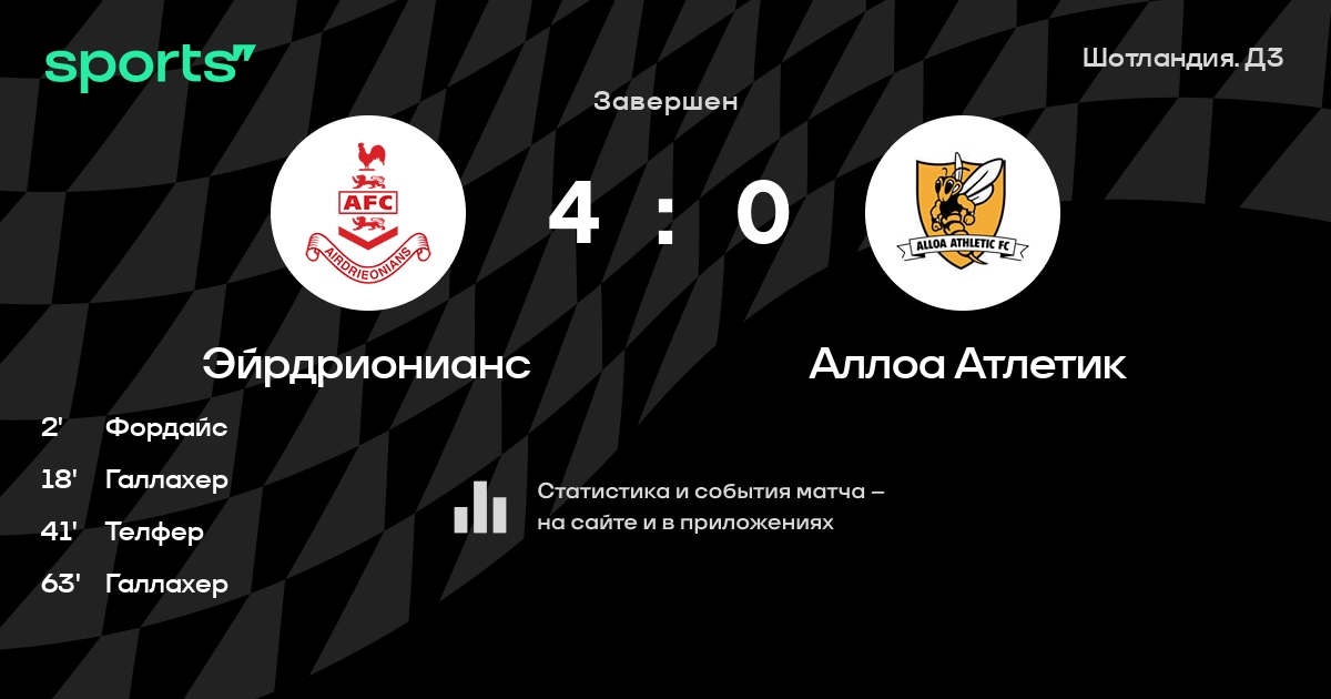 Эйрдрионианс – Аллоа Атлетик: Эйрдрионианс побеждает в 3 последних очных матчах дома