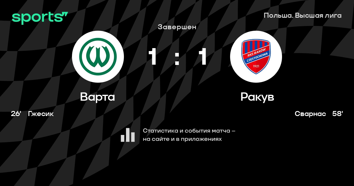 Варта – Ракув: Ракув забивает в 11 последних матчах против этого соперника