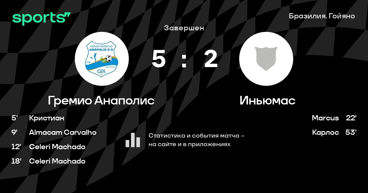 Марсио - Bravin Macedo, de Jesus Miranda, Матеус Гедес, Souza Lima - Кристиан, Marcos Antônio Silva Matias, de Moura Soares, Victor Ferreira Guimarães - João Vitor Araújo Soares, Celeri MachadoЗапасные: Nunes Lima, Pereira De Freitas Junior, Soares Silva, de Oliveira Leal, Borges do Nascimento, Candido da Trindade, da Silva Barros, Soares Santos, Santos Oliveira, Карлос, Souza dos Santos Junior, Пауло Энрике