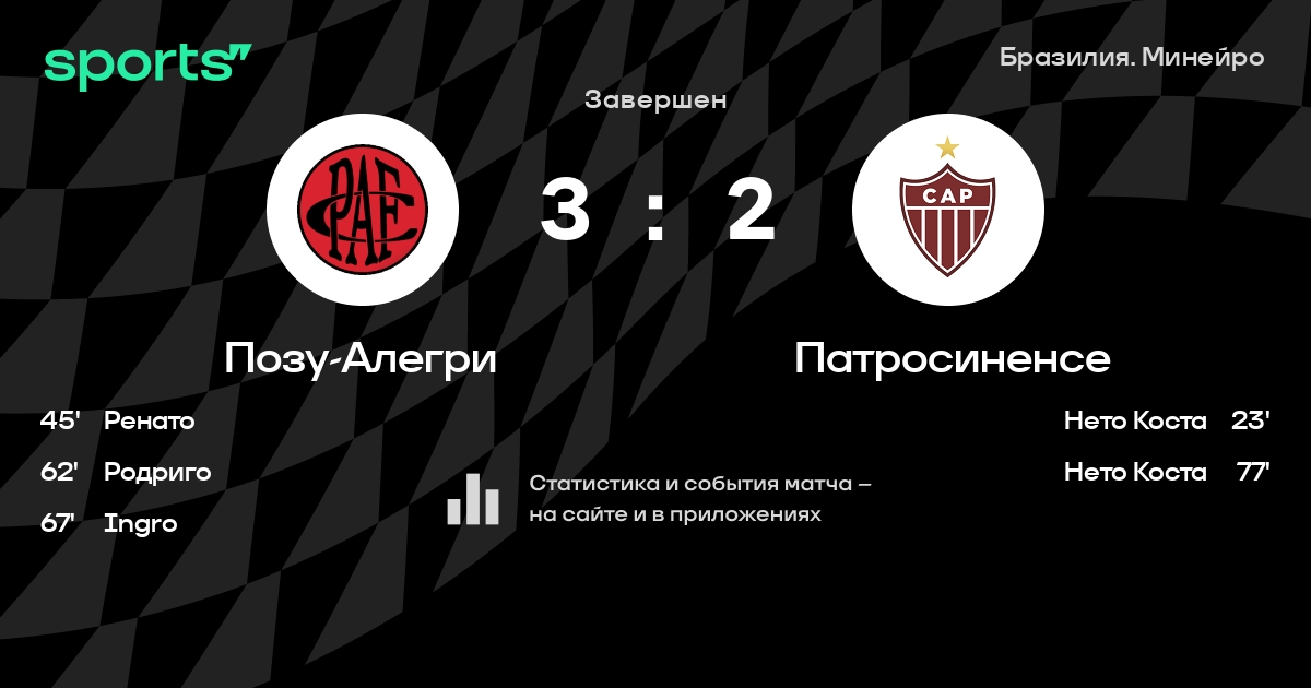 В последних 5 играх Патросиненсе забивает в среднем 1.00 гола за игру