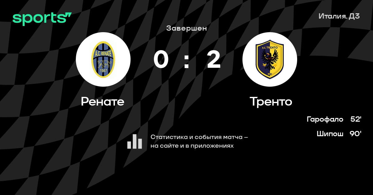 Ренате – Тренто: Ренате не пропускает в 3 последних матчах против этого соперника