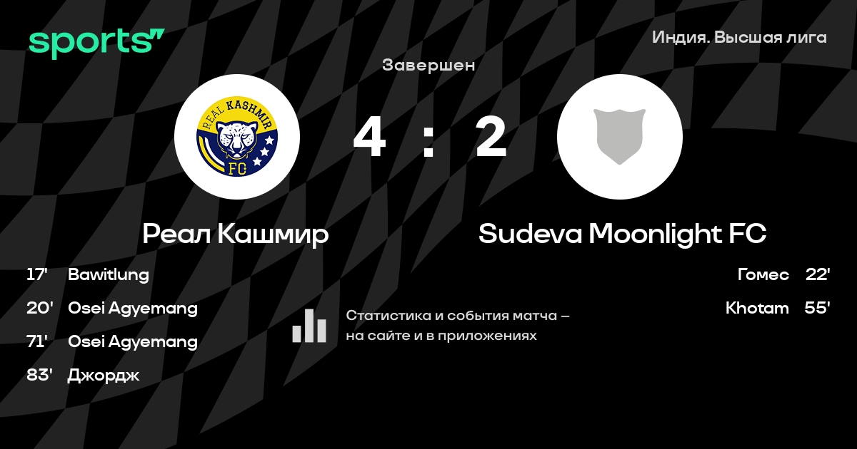 Реал Кашмир – Sudeva Moonlight FC: Sudeva Moonlight FC забивает в 4 последних матчах против этого соперника