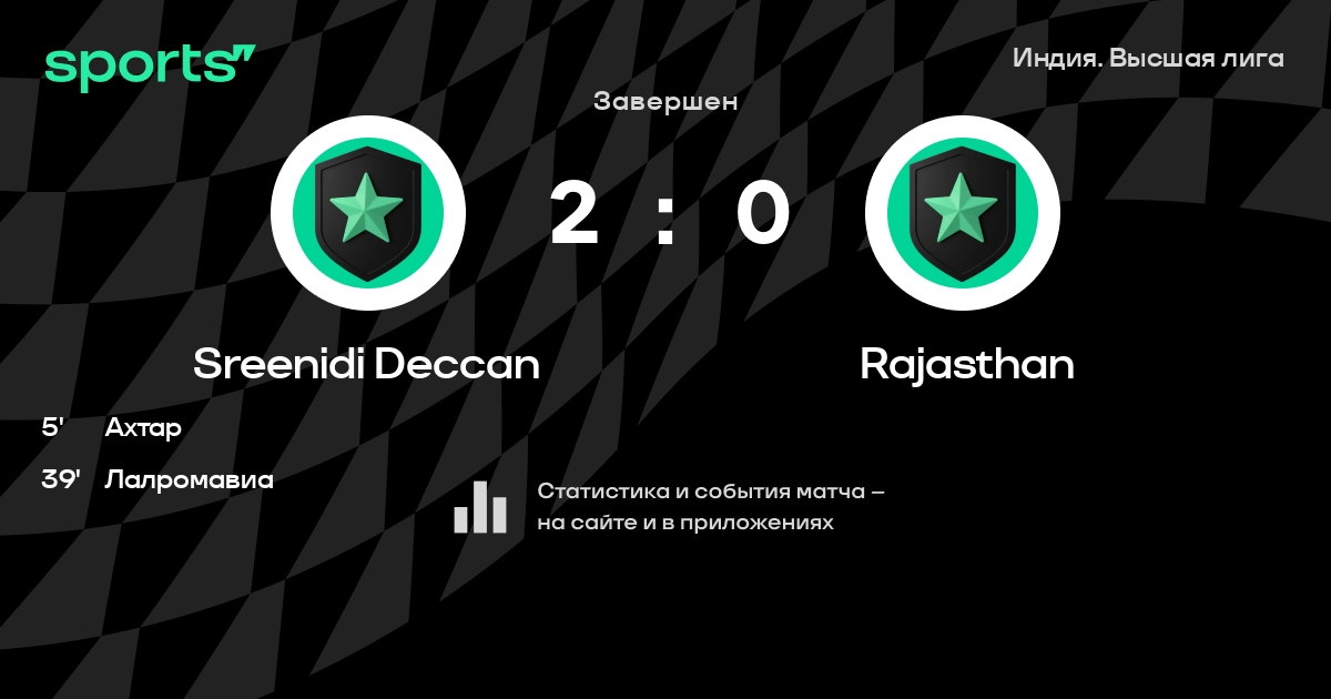 В последних 5 играх Sreenidi Deccan пропускает в среднем 1.00 гола за игру