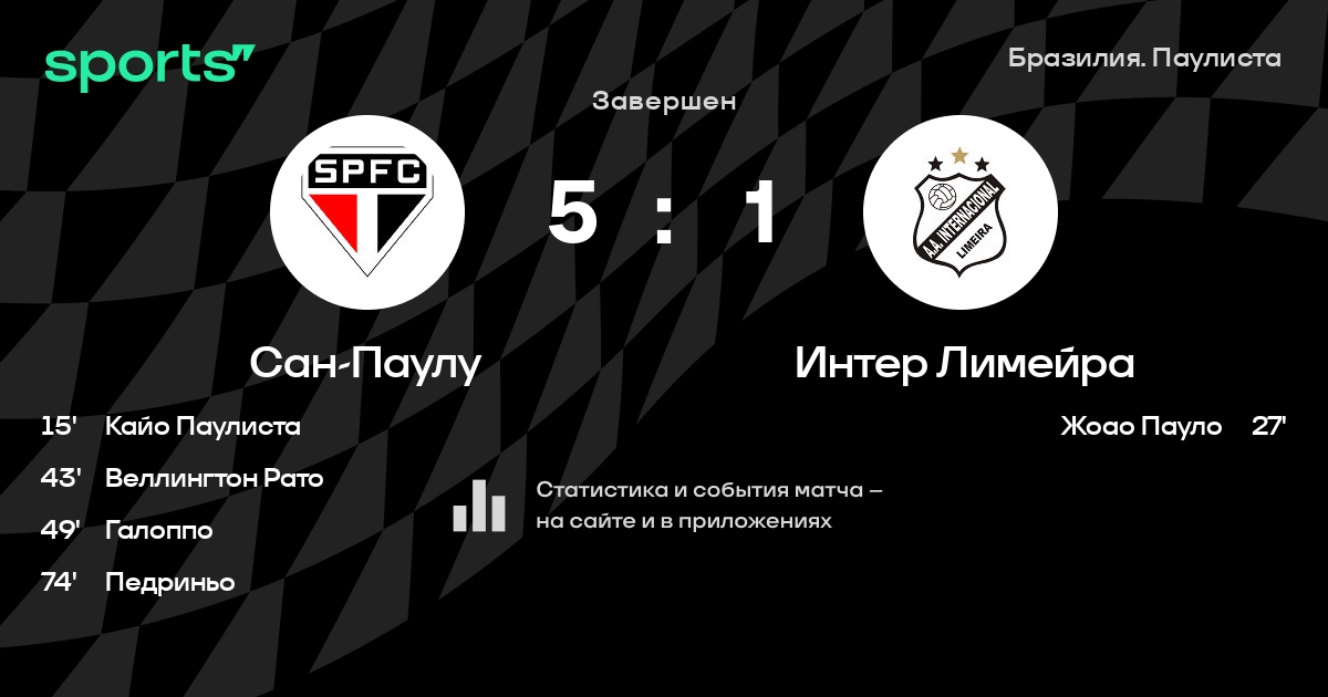 Сан-Паулу – Интернасьонал Лимейра: Сан-Паулу не пропускает в 3 последних матчах против этого соперника