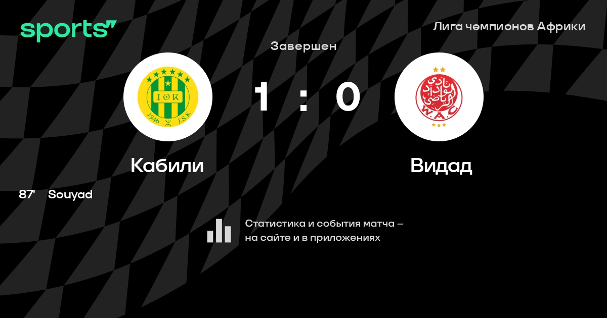 Кабили - Видад: статистика матча от 17 февраля 2023