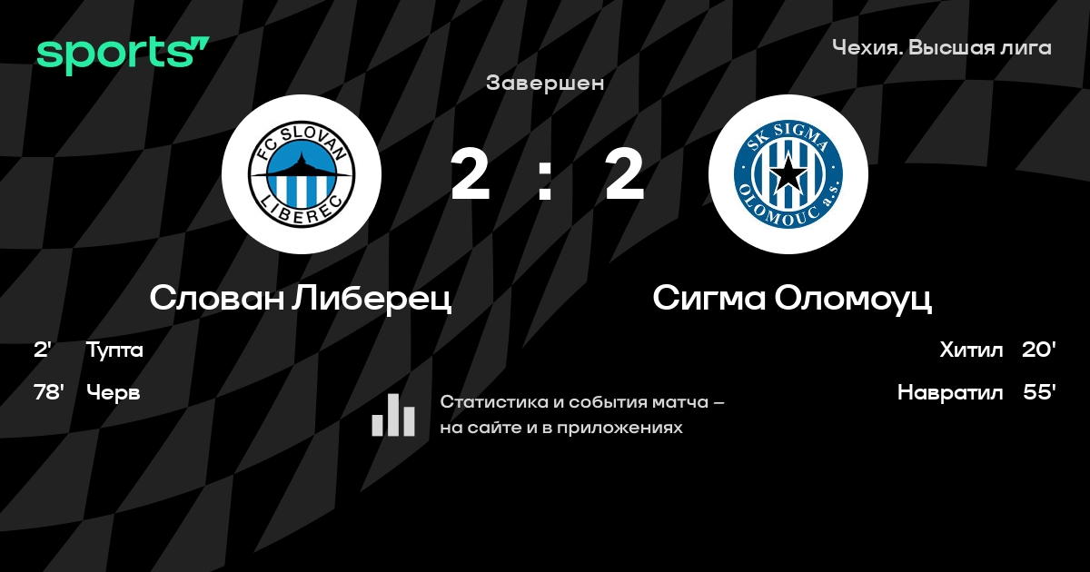 Слован Либерец – Сигма Оломоуц: Сигма Оломоуц не проигрывает в 9 из 11 последних матчей против этого соперника в турнире «Лига 1»