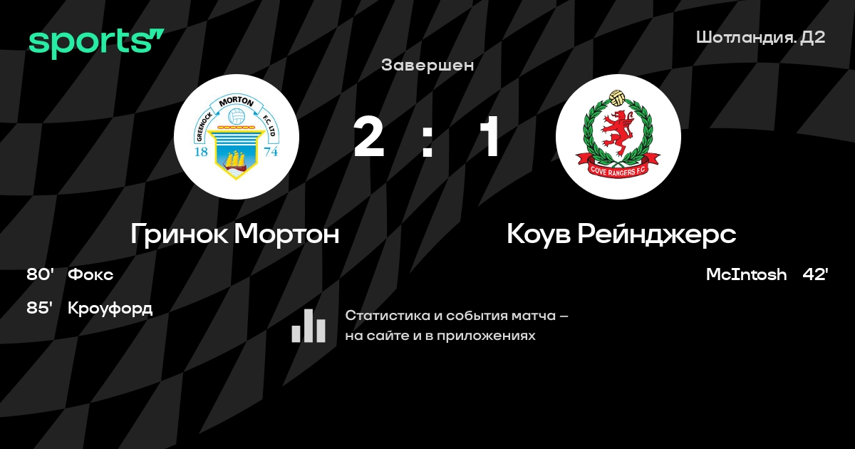 Гринок Мортон – Коув Рейнджерс: Гринок Мортон забивает в 3 последних матчах против этого соперника