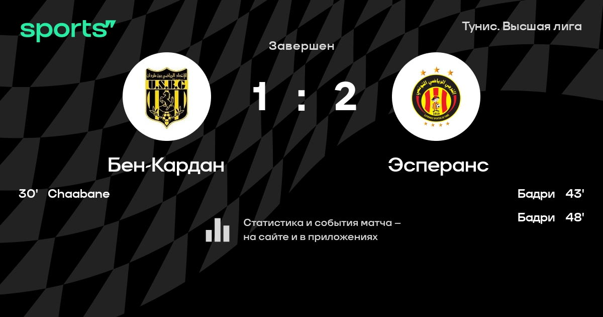 Бен-Кардан – Эсперанс: Эсперанс забивает в 3 последних матчах против этого соперника