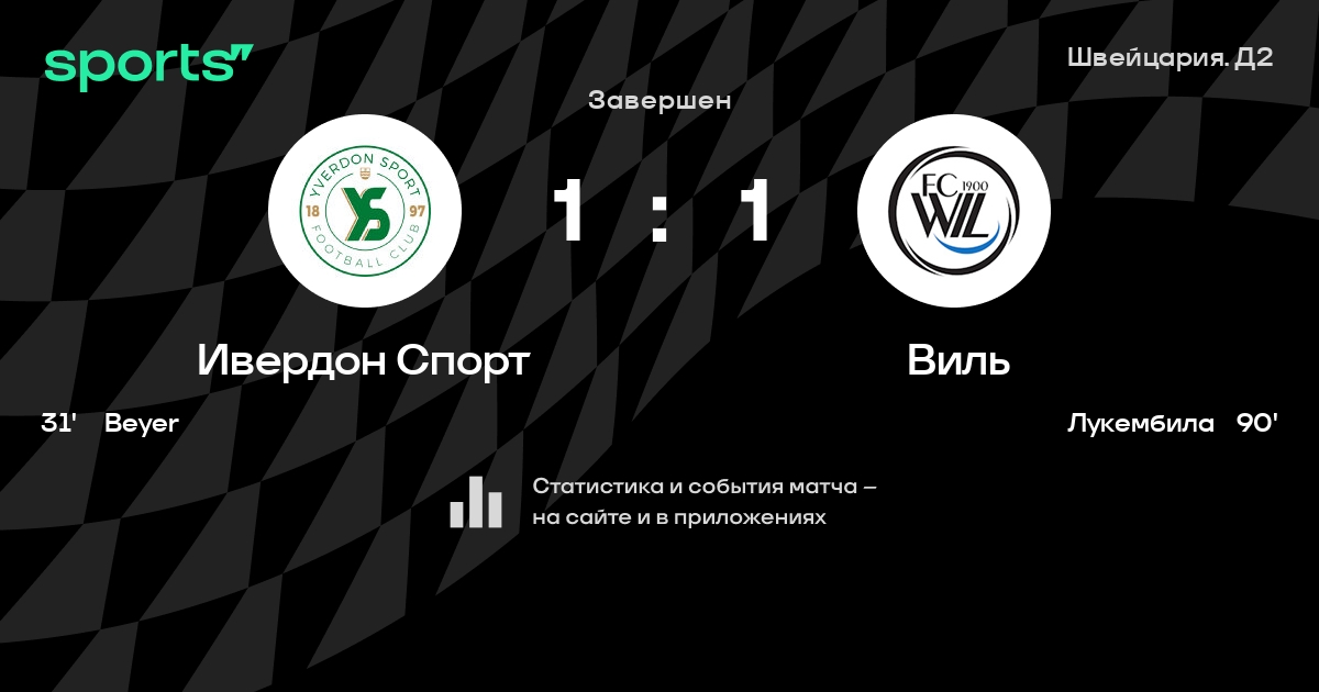 | 1 | Ивердон Спорт | 36 | 20 | 6 | 10 | 64 | 53 | +11 | 66 | ||