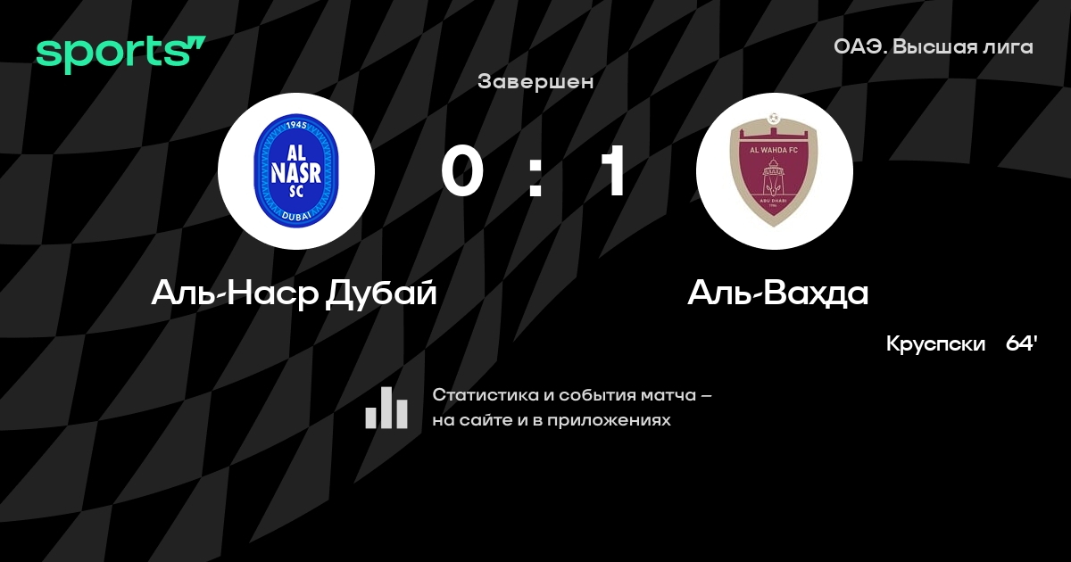 Аль-Наср Дубай – Аль-Вахда: Аль-Вахда не проигрывает в 7 последних матчах против этого соперника