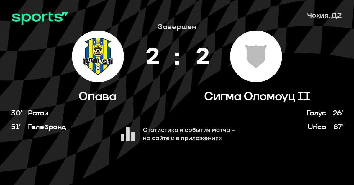 Опава – Сигма Оломоуц II: Опава побеждает в 3 последних очных матчах дома в турнире «Лига 2»