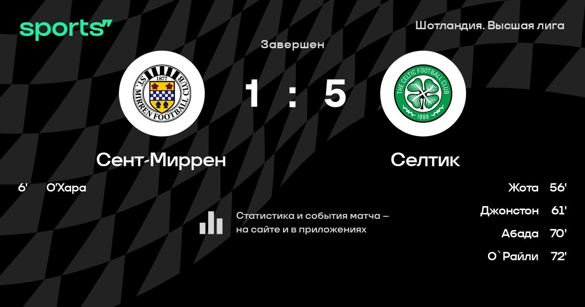 Сент-Миррен – Селтик: Селтик не проигрывает в 6 из 8 последних матчей против этого соперника