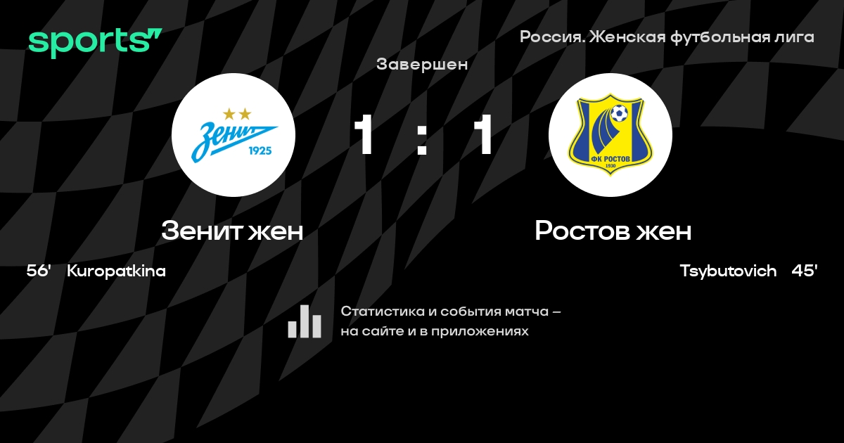 Зенит жен – Ростов жен: Зенит жен не пропускает в 4 последних матчах против этого соперника
